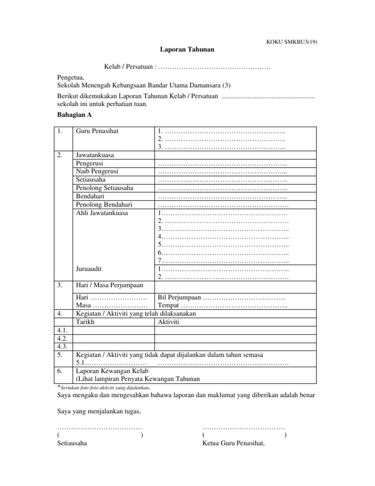 Contoh Laporan Kelab Persatuan Pdf