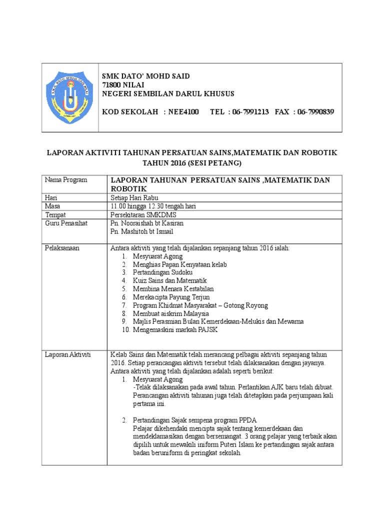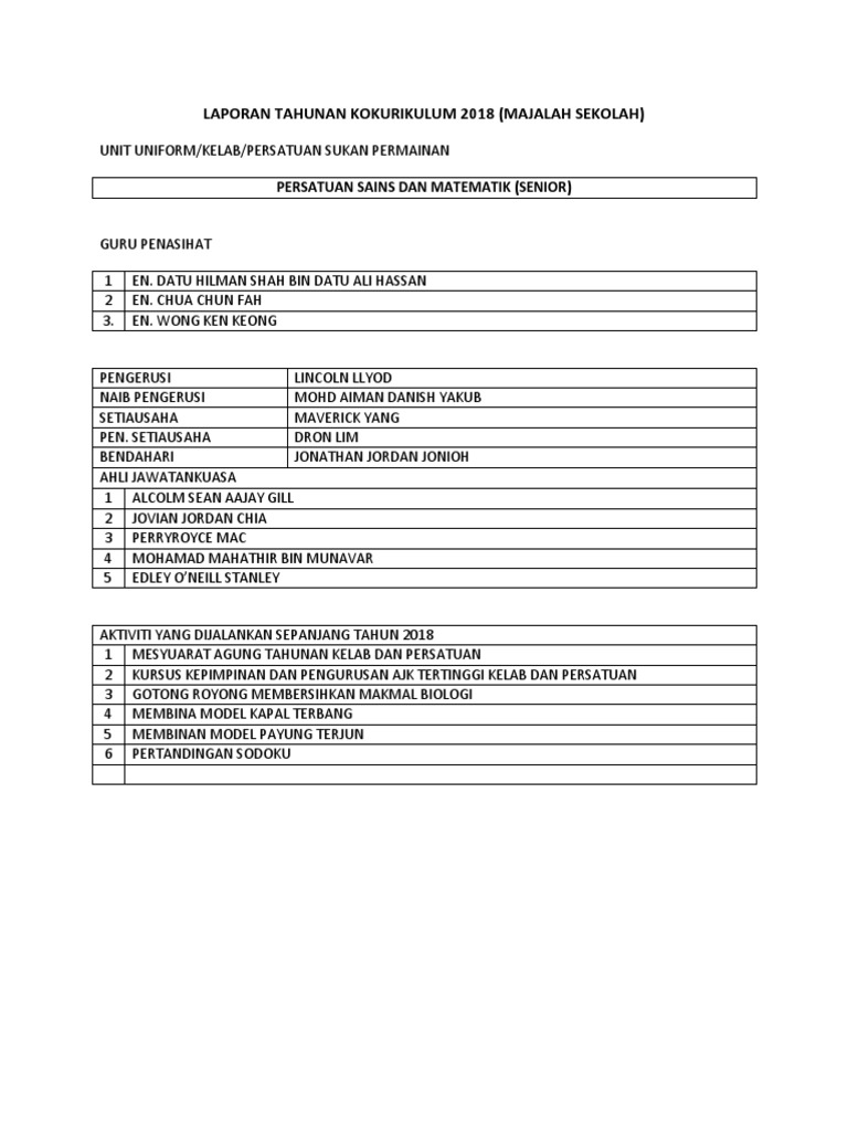 Doc Contoh Penulisan Laporan Tahunan Unit Kokurikulum Fony Nuli Academia Edu