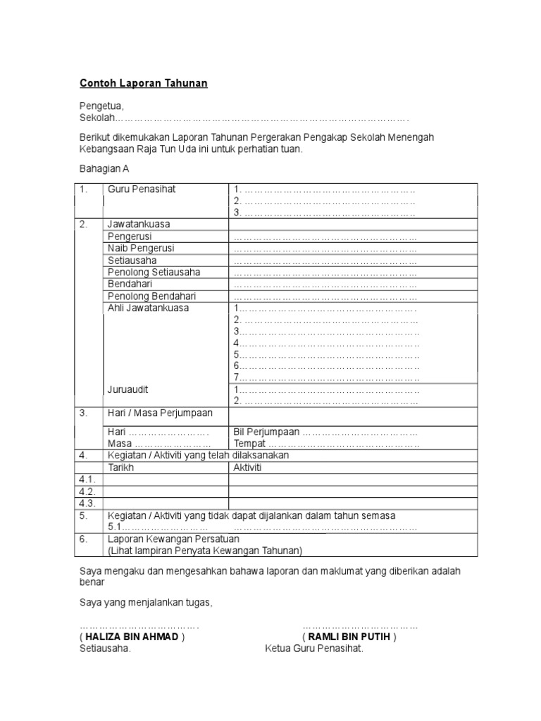 Format Laporan Tahunan Gerko Sekolah Perkongsian ini melibatkan bahan iaitu contoh format pelaporan tahunan gerko sekolah yang terkini Warta Kerajaan bertarikh 28 hb Disember 1967 No. Contoh Laporan Kewangan Tahunan Persatuan. Anda sebagai setiausaha persatuan itu dikehendaki menulis satu laporan lengkap tentang lawatan tersebut.