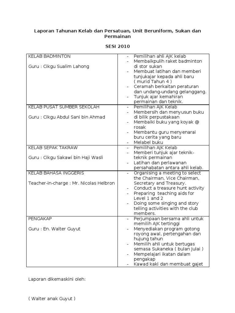 Laporan Tahunan Kelab Dan Persatuan 2010 Pdf